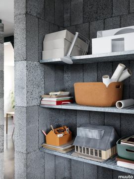 The Mini Stacked is a wall-hanging alternative to the Stacked Storage System with a lighter expression and smaller dimensions, available across various sizes and colors. The Mini Stacked Storage System are an elegantly functional match for smaller spaces such as kitchens, hallways and bedrooms as well as workplace and hospitality settings.