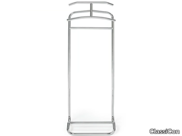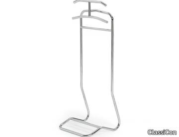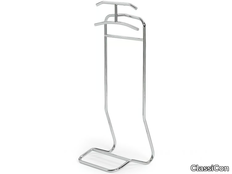 The Mandu valet stand, originally designed by Eckart Muthesius for the Maharajah of Indore's Art Deco-inspired Manik Bagh palace in 1929, is a timeless piece that combines elegance and functionality. Crafted with tubular steel and available in chrome-plated, black, or bronze powder-coated finishes, it features a silicone anti-slide strip for trousers and black plastic gliders, making it a sophisticated solution for gentlemen who prefer not to rely on a simple coat rack. The design’s clean lines and Art Deco flair are accentuated in the new black and bronze finishes, while the chrome-plated version reflects its surroundings. A 3D file of the product is available for download, allowing for detailed visualization and integration into design plans. Supplied by ClassiCon, a Munich-based leader in high-quality, timeless furniture and lighting designs since 1990, the Mandu valet stand exemplifies the brand’s commitment to exceptional craftsmanship and enduring style.