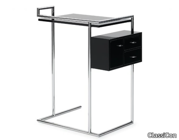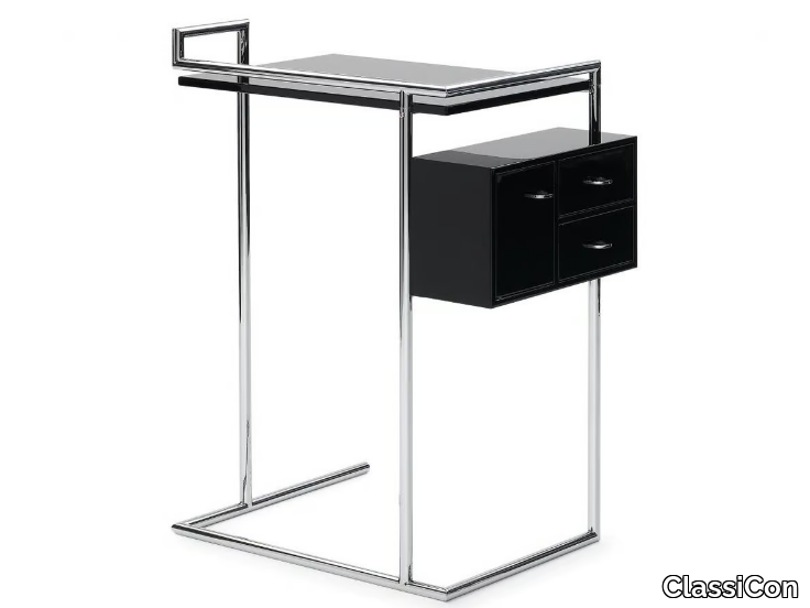 The Petite Coiffeuse by Eileen Gray is a masterful blend of aesthetic elegance and practical functionality, reflecting the designer's unique ability to harmonize form and purpose. Originally created for her iconic summerhouse E1027, this geometrically structured dressing table features a chrome-plated tubular steel frame and a high-gloss lacquered MDF tabletop, available in black or white. The suspended side box includes two swivel drawers and a door, offering compact yet accessible storage, while plastic gliders ensure smooth movement. A 3D file of the product is available for download, allowing for detailed visualization and planning. Supplied by ClassiCon, a globally recognized interior design brand founded in 1990 and headquartered in Munich, Germany, the Petite Coiffeuse exemplifies the company’s commitment to timeless, high-quality designs that seamlessly integrate into both residential and commercial spaces. Explore more at [ClassiCon's website](https://www.classicon.com/).