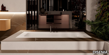 The Dekò bathtub redefines elegance with its minimalist design, available in matt white Mineralsolid or glossy white Mineralux, complemented by a matching drain. Customization options include a painted exterior in any color from the Ideagroup matt lacquer palette or RAL chart, as well as the choice of a Matt Bianco cover. It is offered without an overflow drain but can be paired with a pop-up drain stopper. A downloadable 3D file of the bathtub is available for design planning. Manufactured by DISENIA, a renowned Italian supplier specializing in high-end bathroom and kitchen products, the company is celebrated for its innovative, luxurious designs that blend functionality with modern aesthetics, making it a preferred choice for architects and interior designers worldwide.