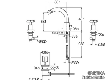 The **Exclusive CRIEV300** is a dual-control, 3-hole deck-mounted bidet mixer featuring mechanical mixing and a 1" 1/4 pop-up waste, available in a variety of premium finishes such as chrome, brushed black chrome, brushed metallic, black matt, yellow gold oro, PVD brushed rose gold, and brushed old brass. This collection combines antique-inspired shapes with modern craftsmanship, offering a timeless yet contemporary design that seamlessly integrates into future-forward lifestyles. The product is not only visually striking but also highly functional, with ergonomic handles for ease of use. A 3D file of the product is available for download, allowing for detailed visualization and planning. **CRISTINA Rubinetterie**, the Italian manufacturer behind this exquisite product, has been a leader in high-quality faucet design since 1949, renowned for blending cutting-edge technology with timeless elegance, making it a preferred choice for luxury and contemporary projects worldwide.