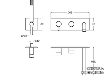 The **Tricolore Verde CRITV102** is a sleek, single-control wall-mounted external set designed for bathtubs, featuring a metal plate, mechanical mixing, a diverter with two outlets, and a 230 mm spout. It includes a fixed support, water outlet, anti-scale mini showerhead, and a durable long-life hose. Available in a variety of sophisticated finishes such as white matt, polished black chrome, brushed gold brass, and PVD rose gold, this collection embodies modern elegance with its clean, geometric lines and focus on essential design. The Tricolore Verde series is versatile, offering options in different heights and enhanced with innovative technologies, making it a perfect fit for any washbasin. A 3D file of the product is available for download, allowing for detailed visualization and planning. **CRISTINA Rubinetterie**, the Italian manufacturer behind this collection, has been a leader in high-quality faucet design since 1949, renowned for blending cutting-edge technology with timeless elegance in their bathroom, kitchen, and wellness solutions.
