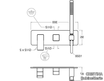 The **Quadri S CRIQS102** is a sleek, wall-mounted bathtub faucet set featuring a single-control design, a metal plate, and mechanical mixing with a diverter offering two outlets. It includes a 180 mm spout, a fixed support, a water outlet, an anti-scale mini showerhead, and a durable, long-life hose. Available in a variety of finishes such as polished chrome, brushed black chrome, matte black, and PVD rose gold, this model combines minimalist geometric shapes with soft, rounded edges, making it a perfect fit for contemporary bathrooms. The Quadri S series, a refined evolution of the iconic Quadri Mono range, continues to embody CRISTINA Rubinetterie’s signature blend of clean lines, compact forms, and timeless elegance. A 3D file of the product is available for download, allowing for seamless integration into design plans. **Supplier Description:** CRISTINA Rubinetterie, an Italian leader in luxury faucet design since 1949, is renowned for its innovative, high-quality bathroom and kitchen solutions, blending cutting-edge technology with timeless elegance.